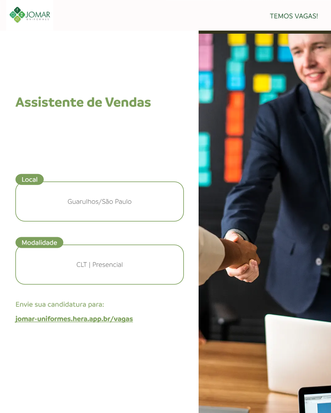 Estamos em busca de um(a) profissional para integrar nosso time de vendas! Se você é comunicativo(a), proativo(a) e tem habilidades com negociação, essa oportunidade pode ser sua.